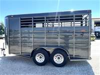 SALE, ON THE LOT NOW, LAST ONE AT THIS PRICE AS TRAILERS HAS HAD A PRICE INCREASE DARK GRAY COLOR 7' tall, 6' wide, 16' floor length 5' Straight wall dressing room w/ 2 saddle racks and bridle hooks, Door on side not nose MATS in stock area and tack Dome lights in each areas Escape door Center gate PLEXIGLASS TRACK SLIDER REAR GATE Treated lengthwise floor 235-85R-16" 10 ply trailer tires 3500# torsion axles Brake on rear axle SPARE TIRE IS INCLUDED! Calico trailers are custom made to order, so if you don't see exactly what you want, we will be happy to quote you a price. Trades considered - Financing available WAC - Nationwide delivery TRAILER DEPOT OF SHAWNEE