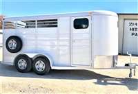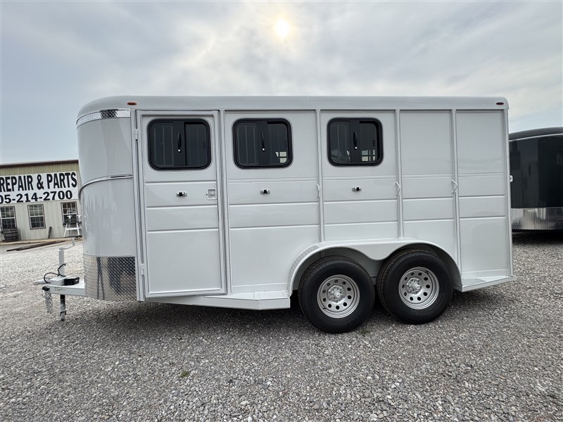 ON THE LOT NOW 6 hole 16" wheels and 10ply trailer tires 3500 # axles with brakes on both axles 3220 LBS 17' length, 7' tall, 6' wide Drop down windows on head side with bars Rubber on butt side Permanent wall dressing room Slider window in DR door Slant divider with pads Plexiglass track on butt side and rear door 3- 2-way roof vents Escape door 1piece rear door with spring loaded Rear Ramp Floor mats in horse part and dressing room 2 dome lights 3 SWING OUT saddle racks 2-Blanket bars SPARE INCLUDED! V - Chrome on nose Calico trailers are custom made to order, so if you don't see exactly what you want, we will be happy to quote you a price Trades considered - Financing available WAC- Nationwide delivery available - TRAILER DEPOT OF SHAWNEE